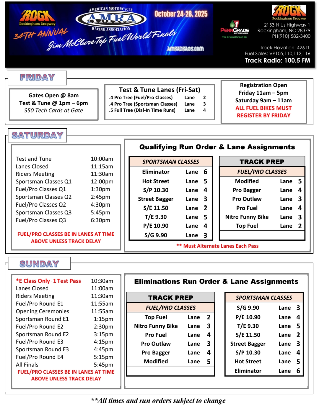 ⏰ Spectator Gates: 8:00 AM (Fri–Sun)